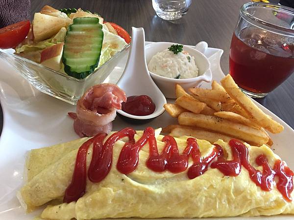 歐姆蛋裡面有滿滿的起司,吃起來很爽很罪惡,但是最後有點膩